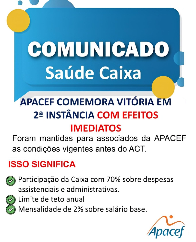 ✅ A ação judicial movida pela APEA, a respeito do Saúde Caixa, está no TST desde 28/11/22, aguardando julgamento.
